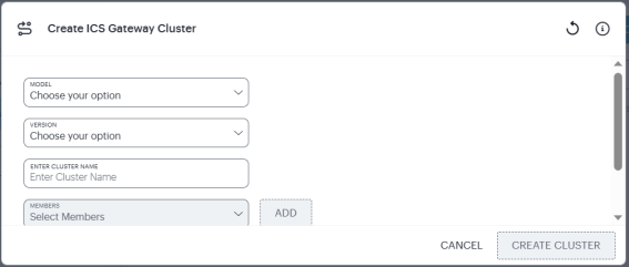 - Reboot Cluster: Reboots all nodes in the Cluster. See Rebooting ICS Gateway/Cluster.